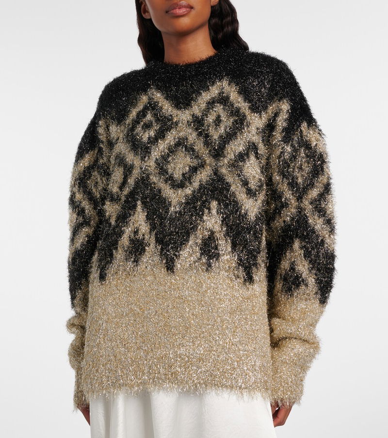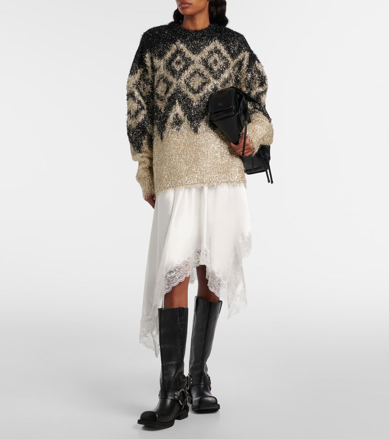 Stockholm-based Acne Studios has earned a firmly established cult following through its cool Scandinavian aesthetic. This relaxed-fit lamé sweater is knitted with light-catching metallic fibres, creating a charming all-over pattern.