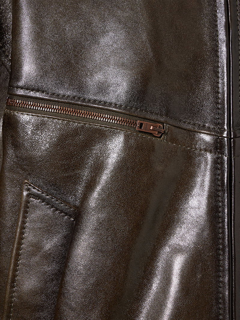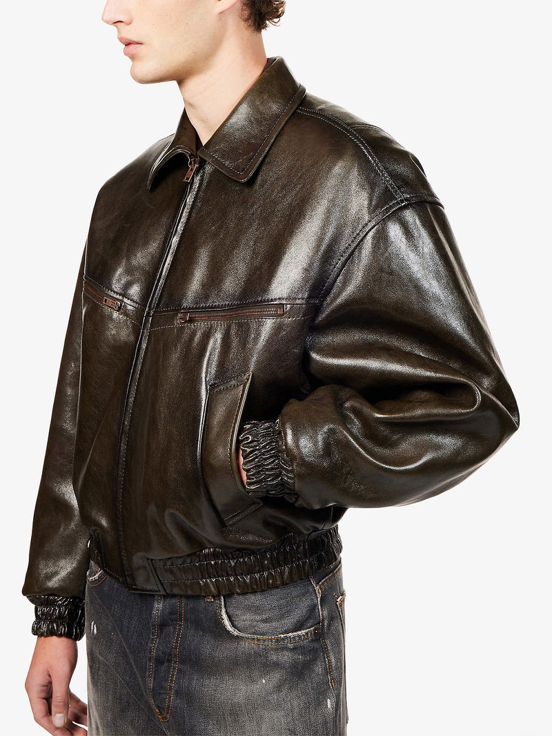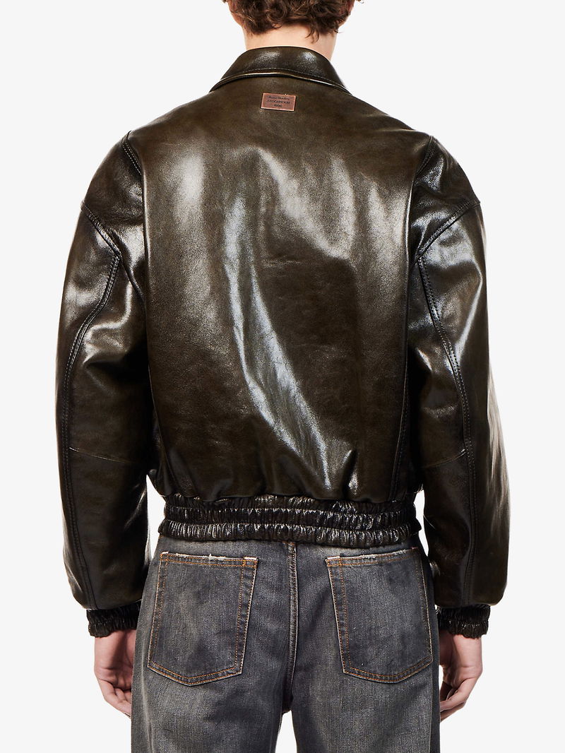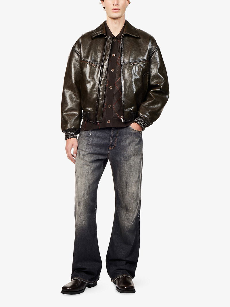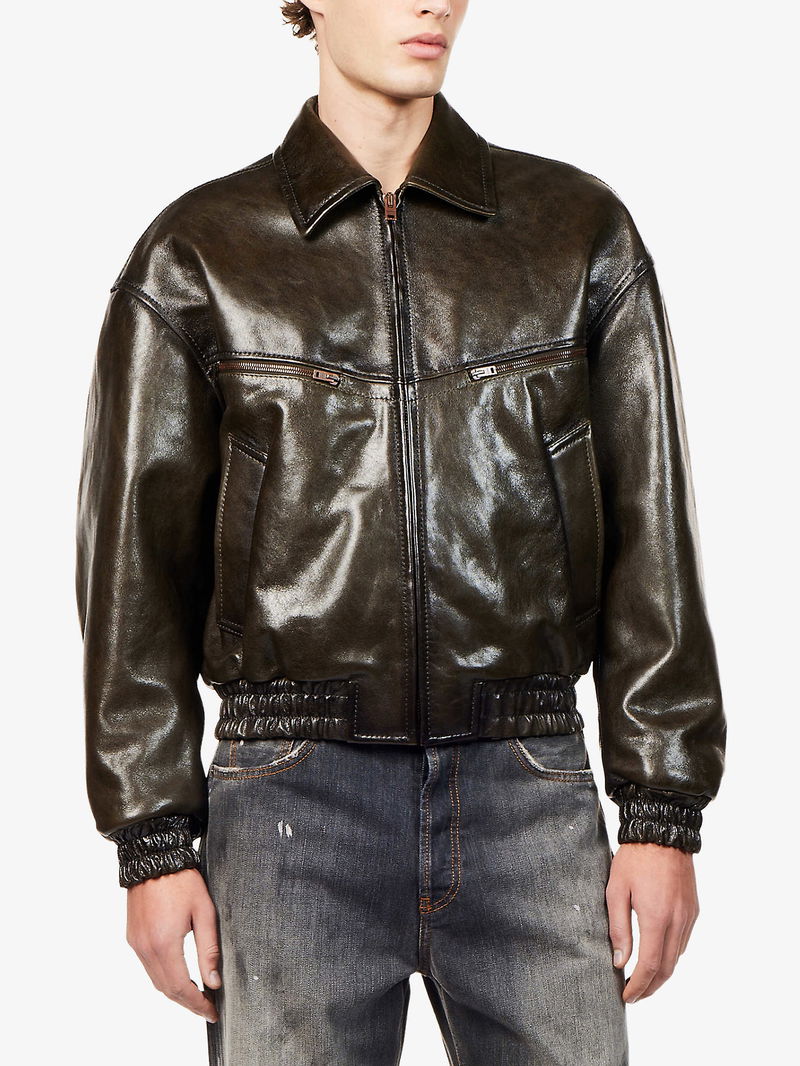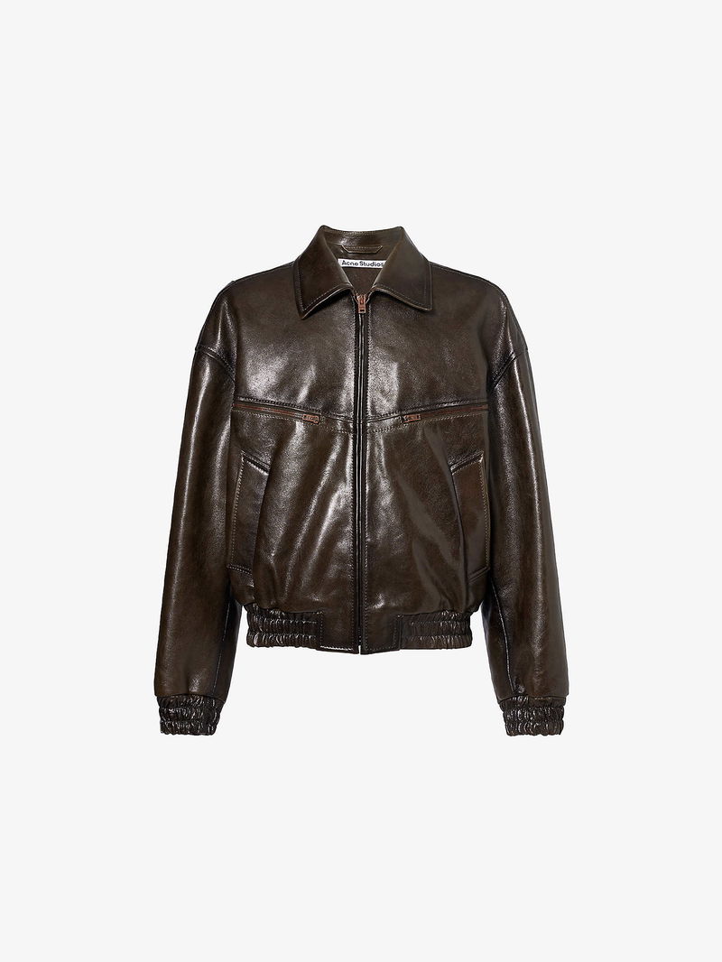 Acne Studios leather jacket. Regular fit, collar, long sleeves, pockets at front, elasticated trims.