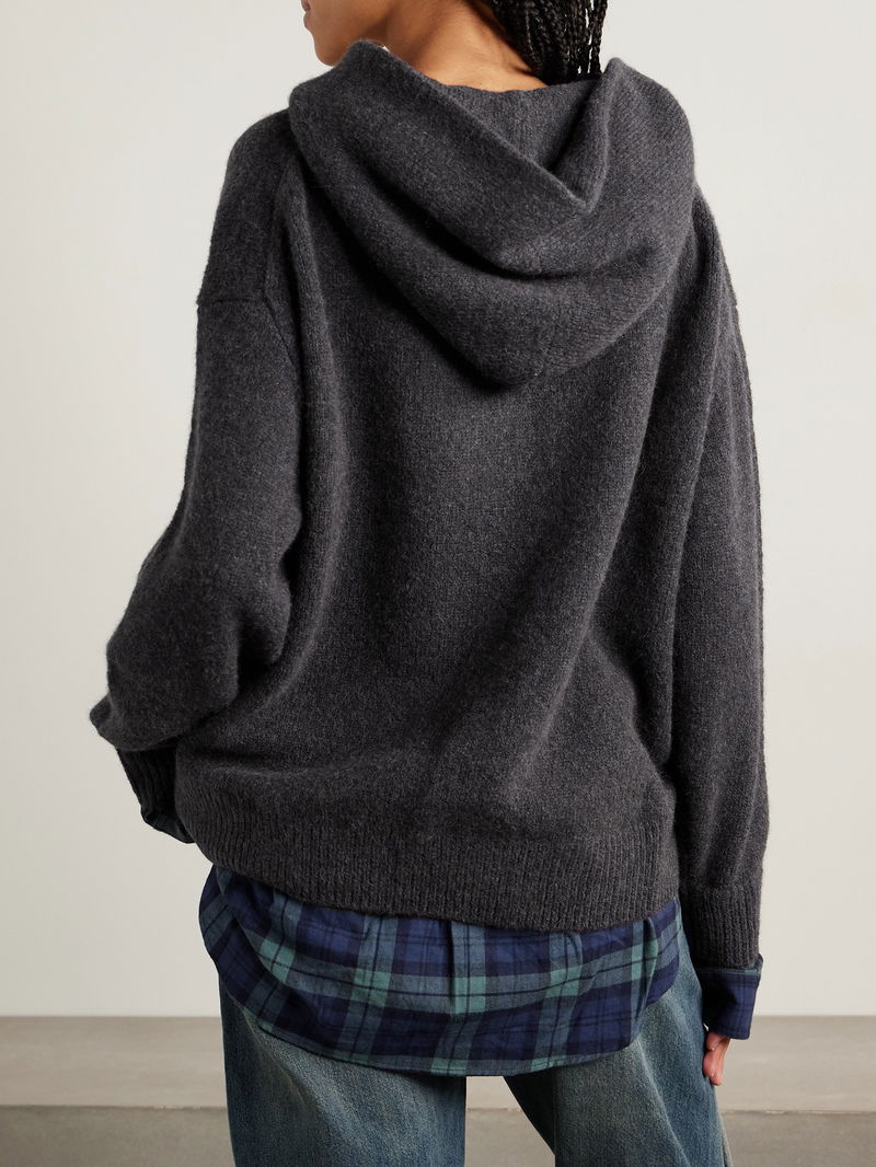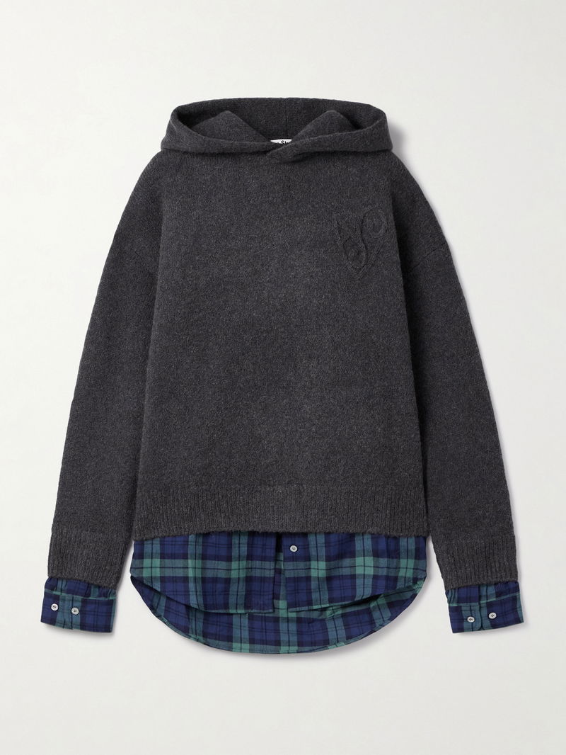 Layered Knitted And Checked Cotton-flannel Hoodie