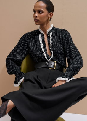 Acne Studios' blouse is designed with sleeve-inspired ties that create the illusion of a matching shirt knotted at the neck. It's made from two layers of polka-dot georgette - the base of which is torn for a distressed effect.