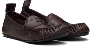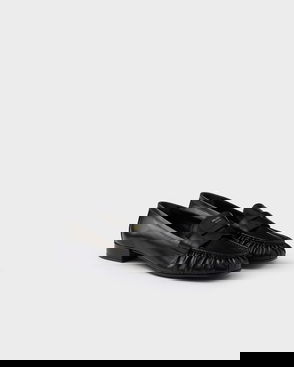 Buffed calfskin loafers in black.· Square toe· Harness-style overlay at ankle· Logo embossed at pin-buckle slingback strap· Buffed calfskin lining· Stacked rubber block heel· Treaded rubber sole· Logo-engraved antiqued silver-tone hardware·