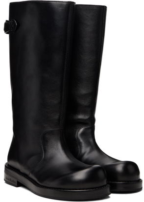 Knee-high buffed leather boots in black.· Square toe· Pull-loops at collar· O-ring and straps at sides· Logo embossed at back strap· Stacked leather heel with rubber injection.