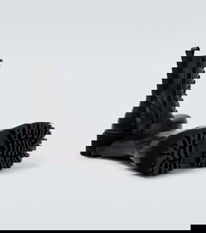 Ankle-high waxed buffed calfskin boots in black.· Logo embossed at outer side· Zip closure at inner side· Pull-loop at heel collar· Buffed calfskin lining· Stacked leather block heel with rubber injection· Leather sole with rubber injection.