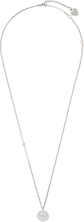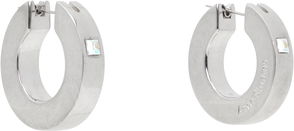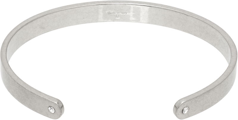 Open cuff bracelet in silver-tone brass. · Logo engraved at face · Bezel-set crystals at ends