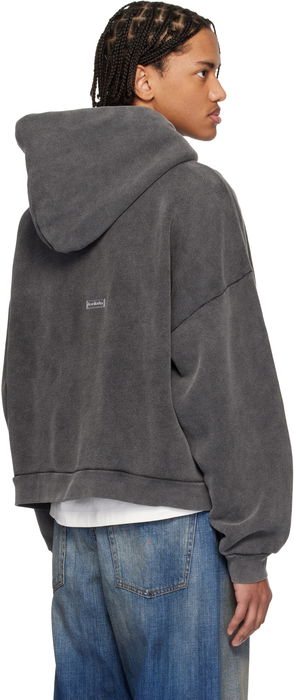 Acne Studios cotton-blend sweatshirt. Hood, side slip pockets, logo print at back, distressed details, ribbed trims, faded finish. Slips on.