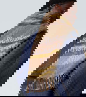 Acne Studios prints this purple and yellow scarf with a logo that commemorates the opening of the label’s new headquarters on the central-Stockholm street of Floragatan — the building is regarded as a masterpiece of brutalist architecture. Crafted in Italy from soft wool-blend twill, it’s patterned with jacquard checks, then finished with fringed ends.