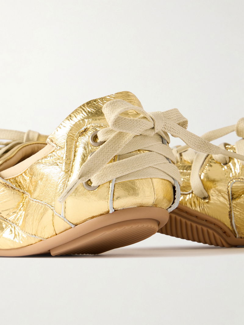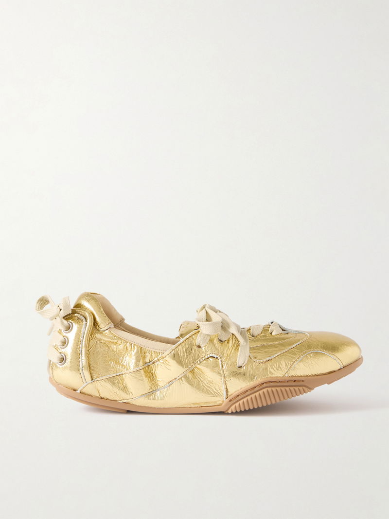Acne Studios' sneakers fuse ballet and running shoes to create something entirely unique. Crafted from panels of gold leather, they're threaded with laces and have rubber soles that offer plenty of grip.