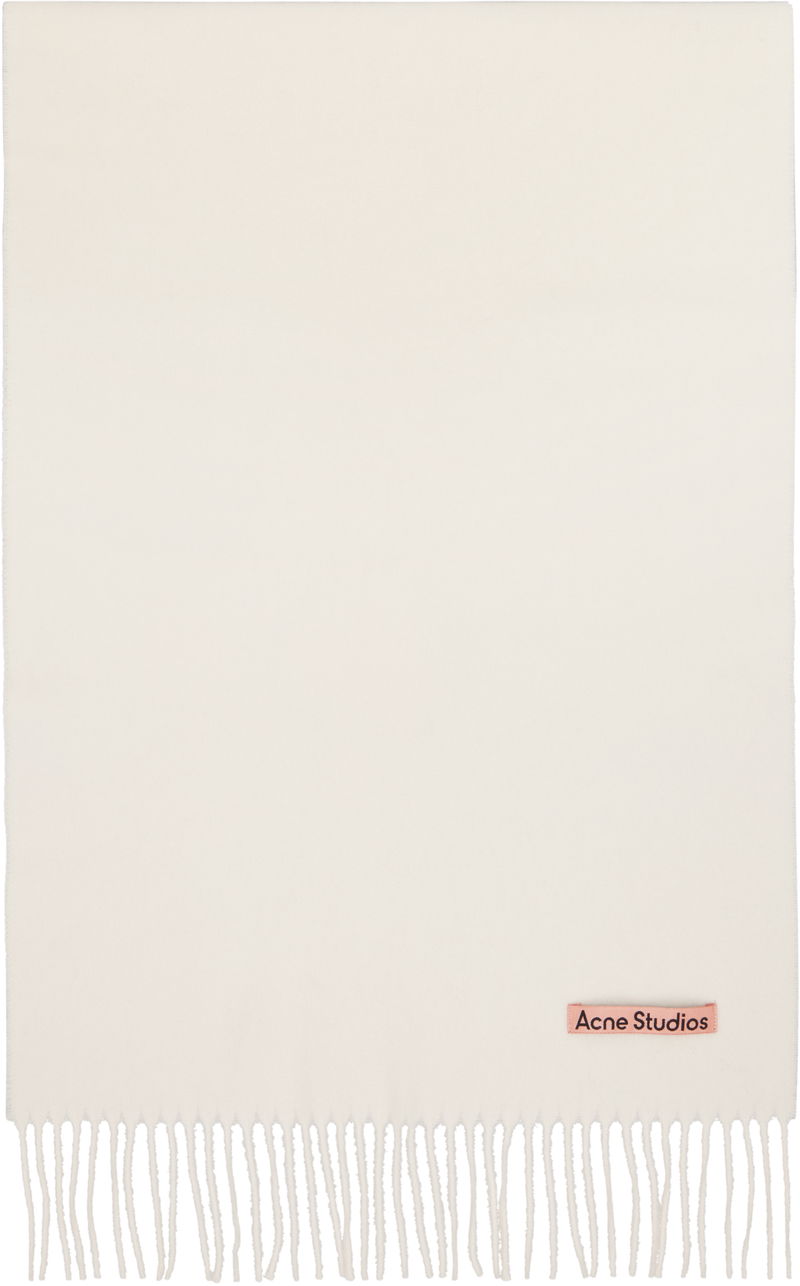 Off-White Fringe Wool Narrow Scarf