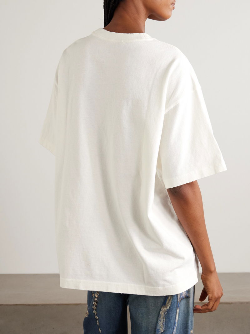 Printed Distressed Organic Cotton-jersey T-shirt