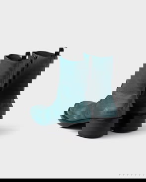 Ankle-high calfskin suede boots in blue. · Trompe-l'œil effect printed throughout· Patch pocket at vamp· Logo plaque at heel counter· Lambskin shearling lining· Treaded rubber sole.