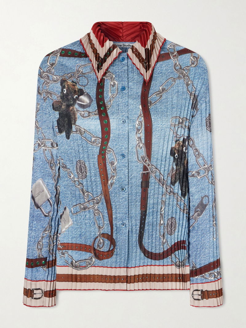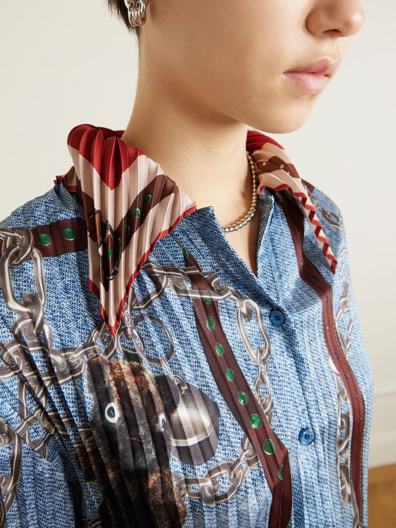 Printed Pleated Satin-twill Shirt