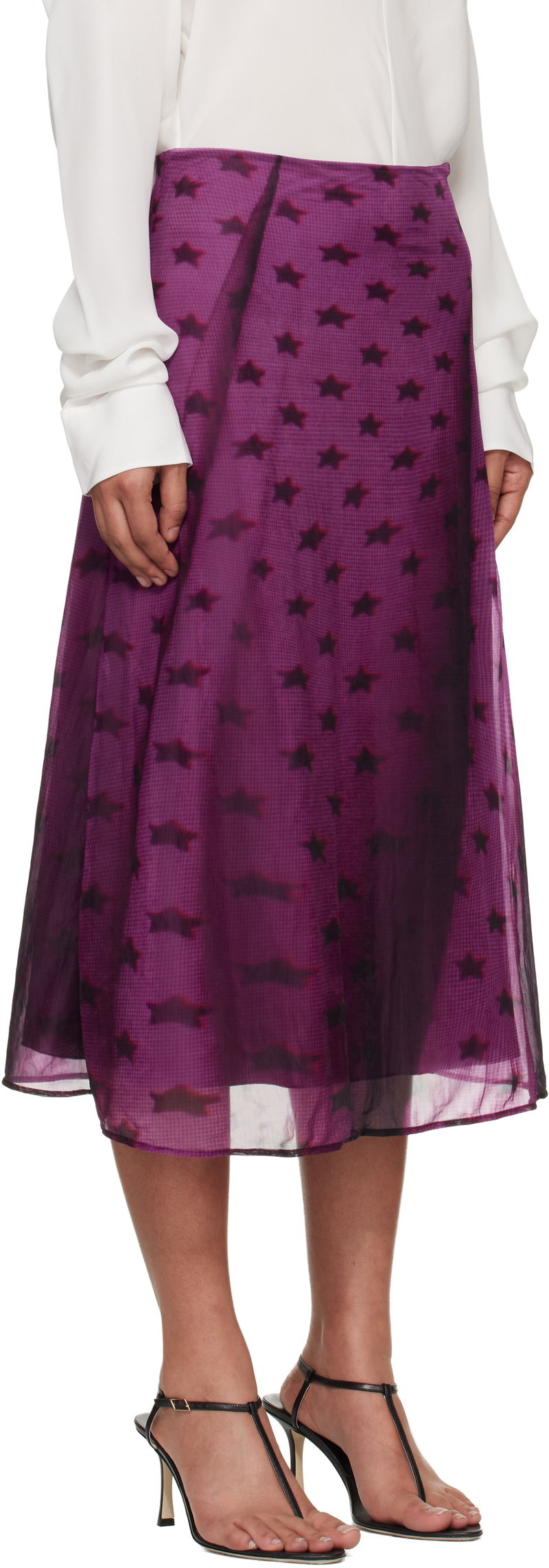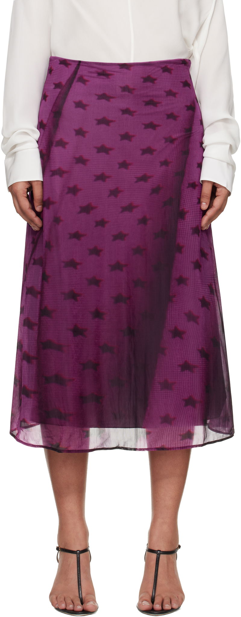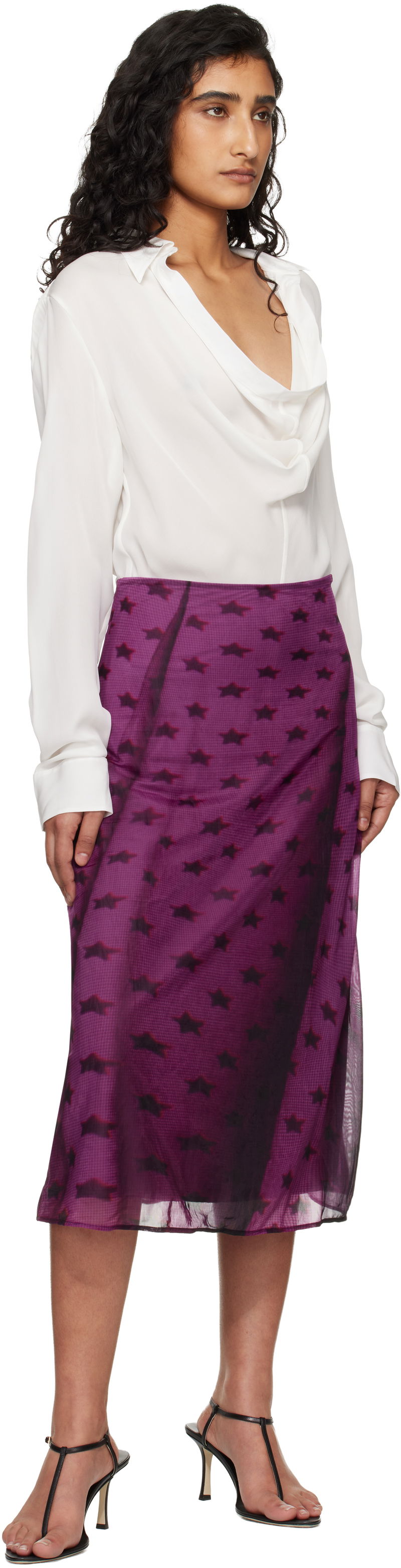 Semi-sheer nylon mesh maxi skirt. Graphic pattern printed throughout. Zip closure at side seam. Full jersey lining.