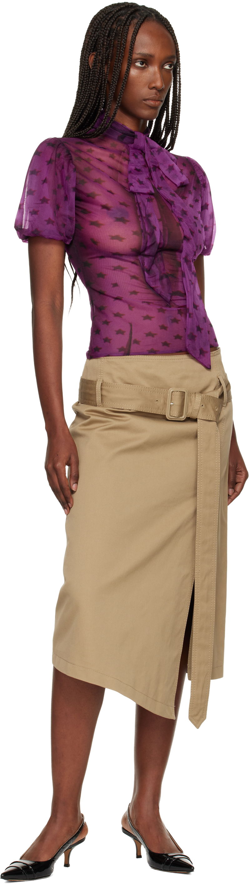 Purple Sheer Bow Blouse