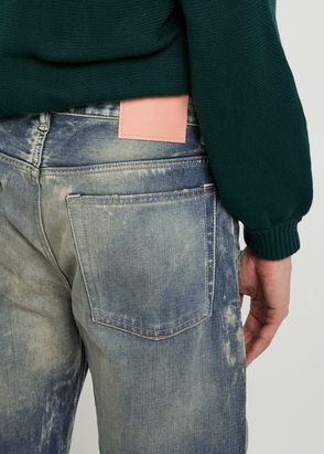 Loose-fit non-stretch organic cotton denim jacket. Fading throughout.· Spread collar· Button closure· Flap and welt pockets· Dropped shoulders· Single-button barrel cuffs· Adjustable button tabs at back hem· Logo-engraved copper-tone hardware.