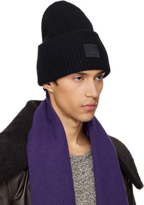 Rib-knit stretch cotton-blend beanie in black.· Logo patch at face· Rolled brim.