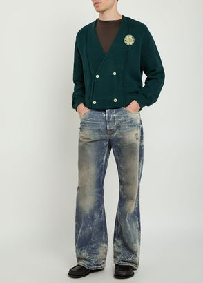 Slim-fit stretch organic cotton-blend denim jeans. · High-rise· Belt loops· Five-pocket styling · Button-fly· Logo patch at back waistband· Logo-engraved silver-tone hardware.