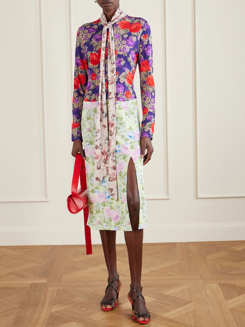 Scarf-detailed Floral-print Crepe Midi Dress