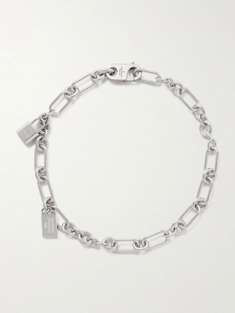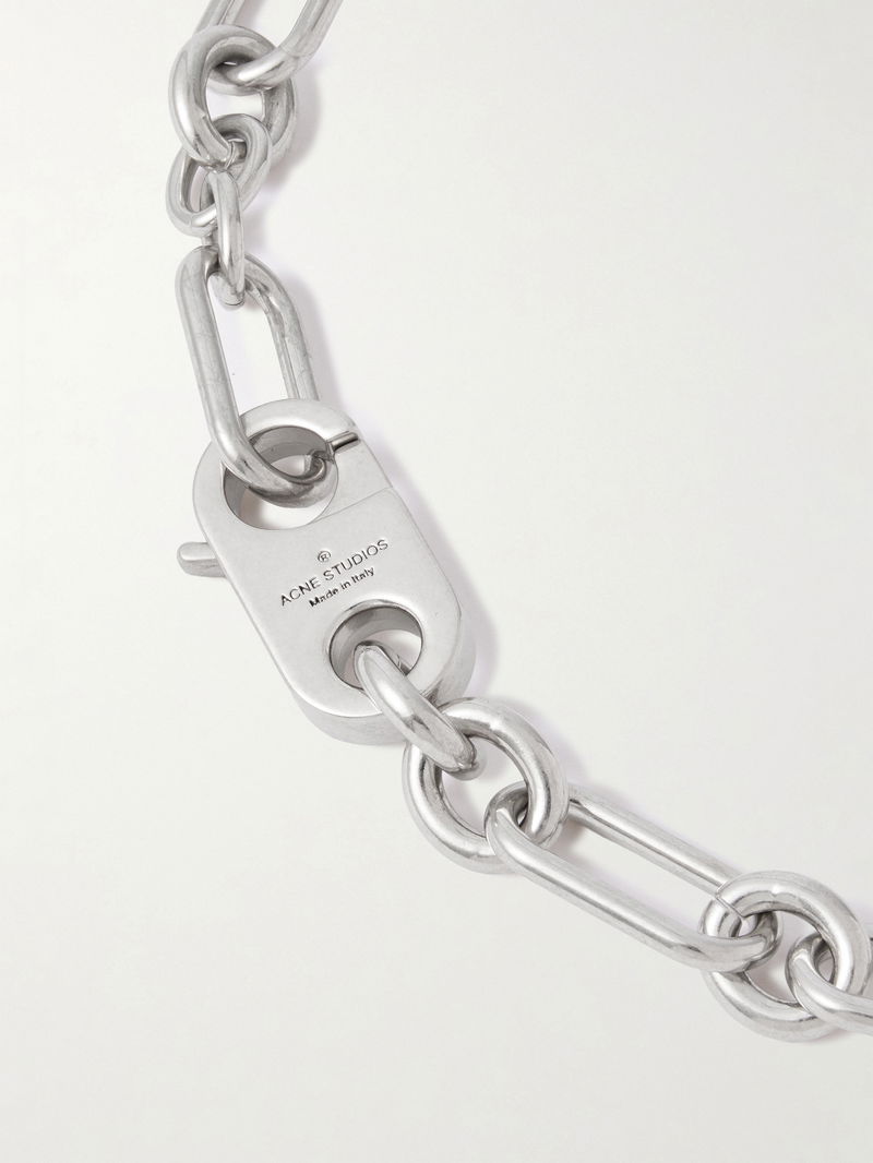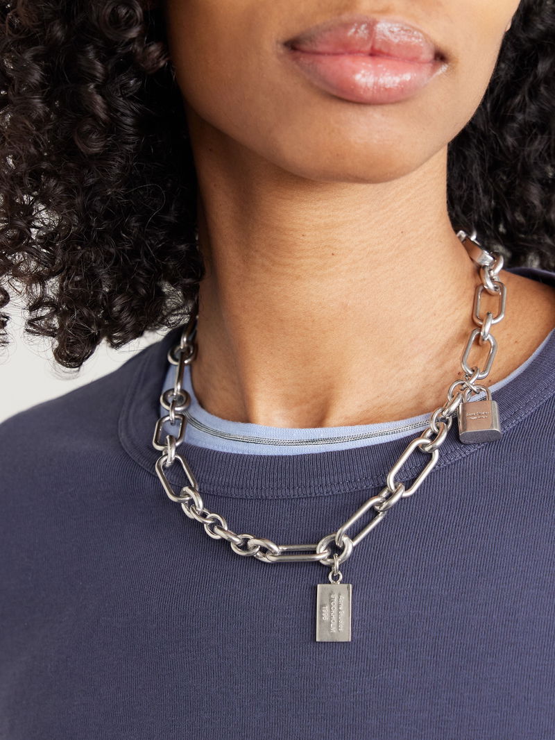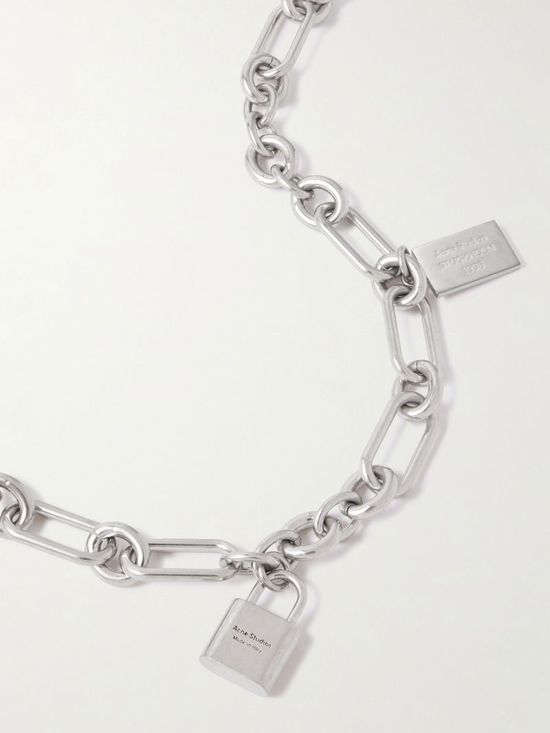 Acne Studios' necklace distils the brand's cool, industrial sensibility into a single statement piece. Cast from silver-tone metal, it features elongated links finished with a padlock charm and a signature '1996' logo tag.