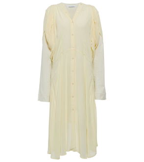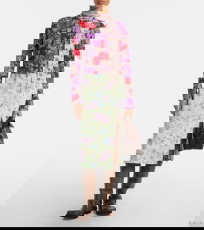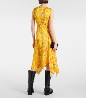 Acetate- and polyester-blend satin dress. Graphic pattern printed throughout.· Crewneck· Pleats at waist· Draping and raw edge at handkerchief hem· Concealed zip closure at back·