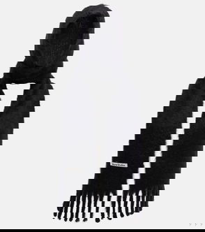 Acne Studios mohair-blend scarf. Tartan, leather designer plaque, fringed ends, brushed finish