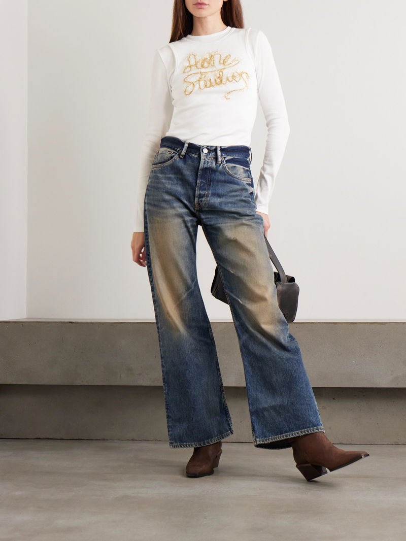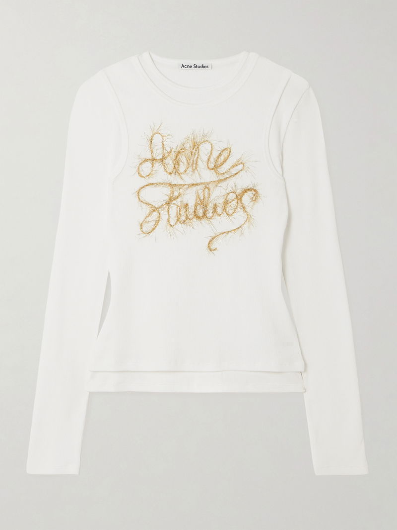 With its wispy, metallic embroidered logo, there's no mistaking Acne Studios' T-shirt. It's cut close from soft cotton-blend jersey with a playfully layered construction that gives the illusion of two styles worn together.
