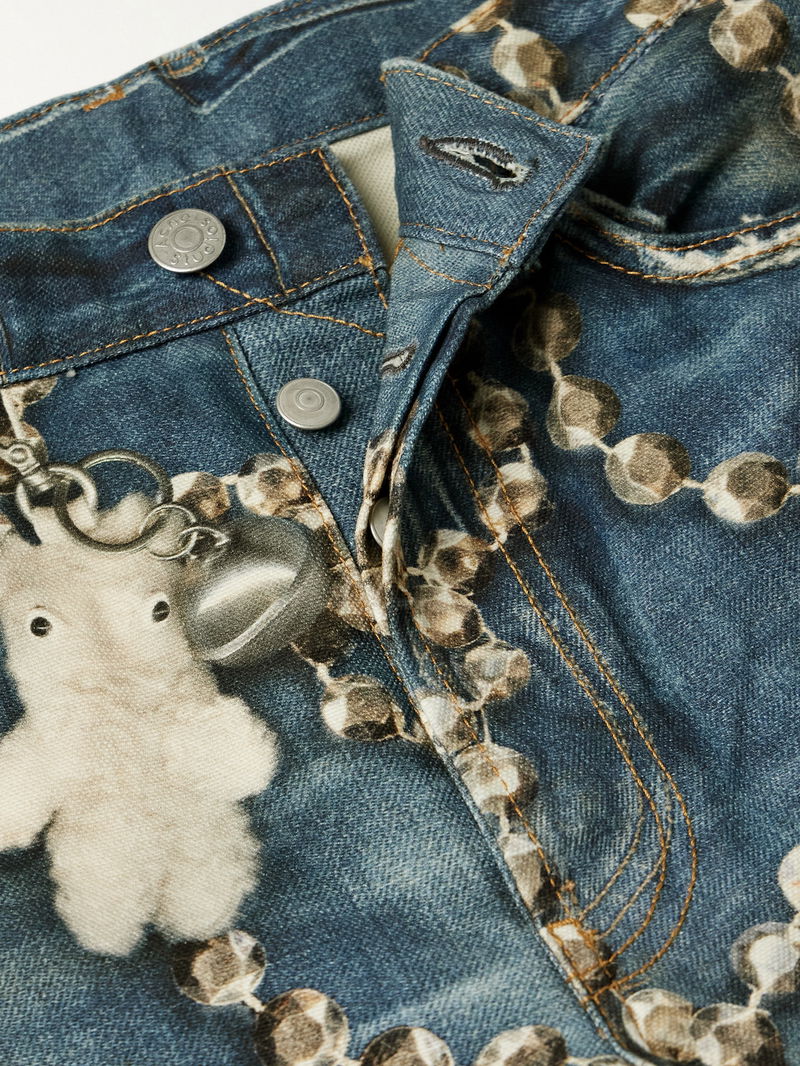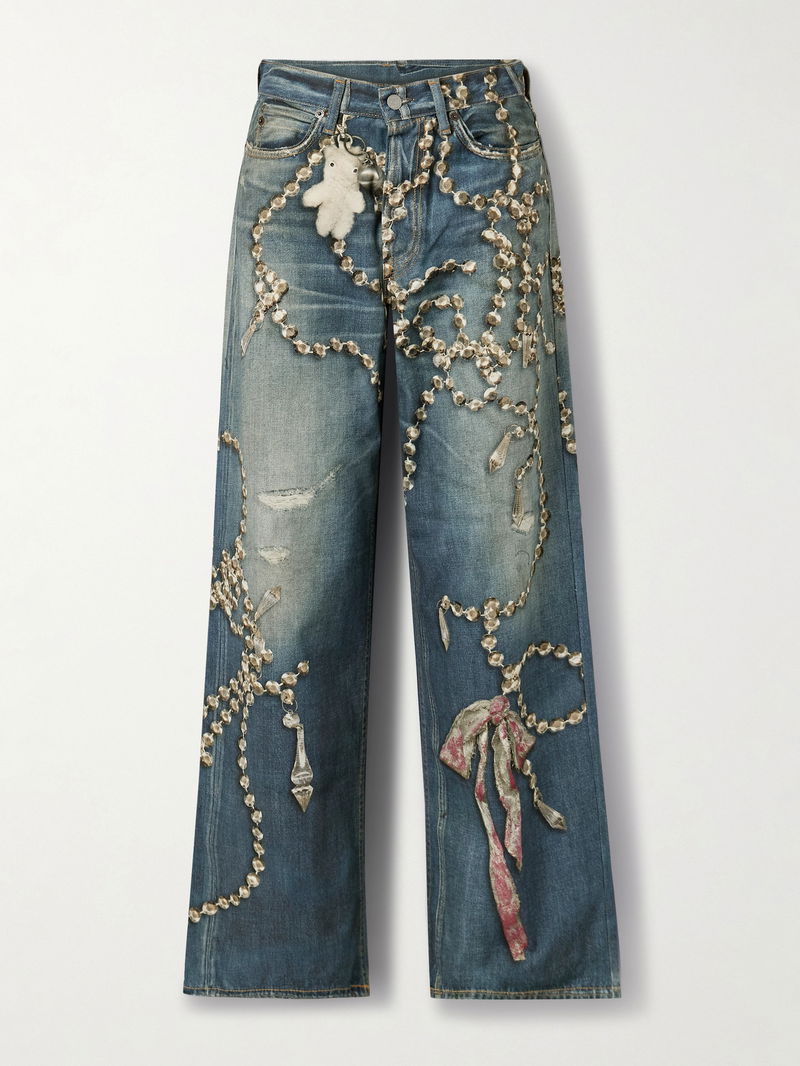 Acne Studios' jeans are a wearable work of art. Cut from denim, they're printed with a keychain, bows and sparkling crystals that look threaded through the belt loops.