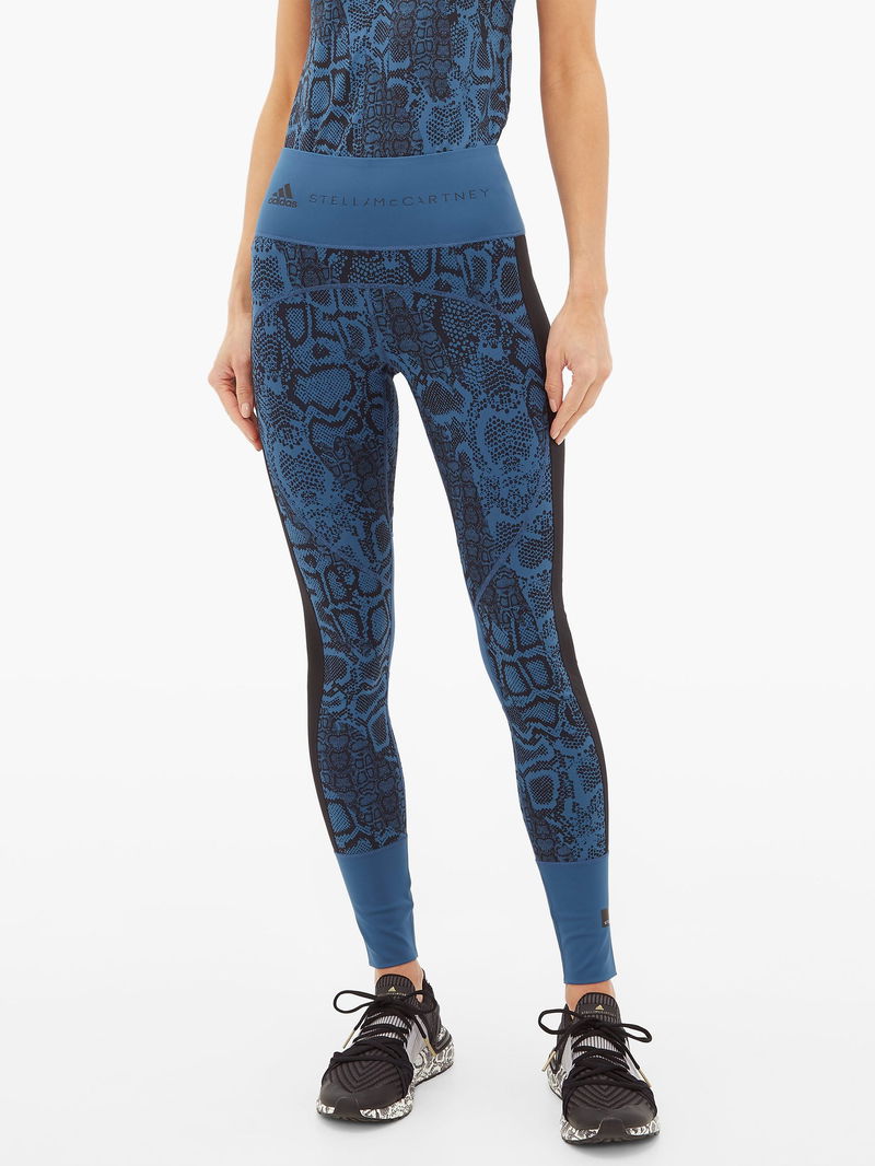 Adidas By Stella McCartney’s blue technical jersey leggings display a vibrant blue snake-print and are crafted entirely from recycled fabrics, in-line with the designer’s sustainable business model. They feature an elasticated waistband printed with a black typeface logo and follow a high-rise fit. Pair them with the matching top and trainers.