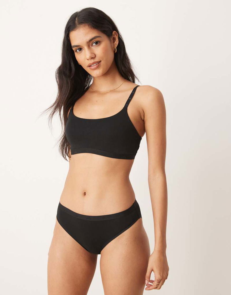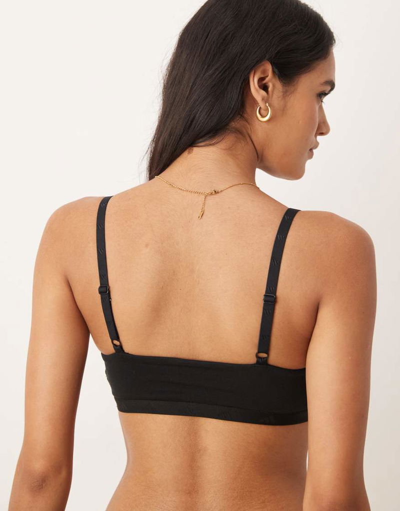Elastic Scoop Bralette With Tonal Logo Detail In Black
