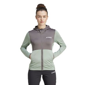 Introducing the Essentials 3-Stripes Full-Zip Fleece Hoodie for women. This regular fit, hooded track top is made with a blend of cotton, recycled polyethylene terephthalate and viscose, offering a design that supports adidas's ambition to end plastic waste. The traditional Three Stripes branding and brushed back fleece material provide a modern fit with a nod to adidas' classic style. Ideal for mixing and matching with your favourite fashion items, it's a staple for any wardrobe.