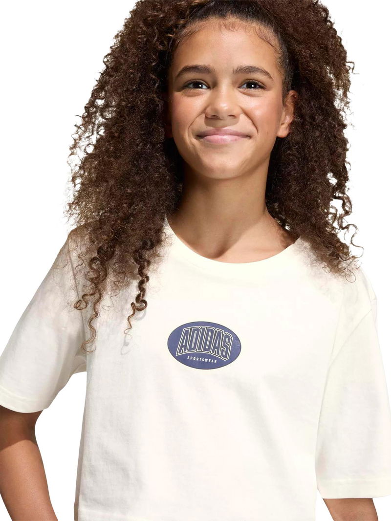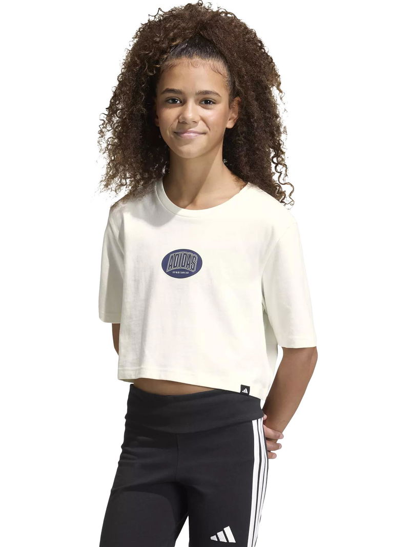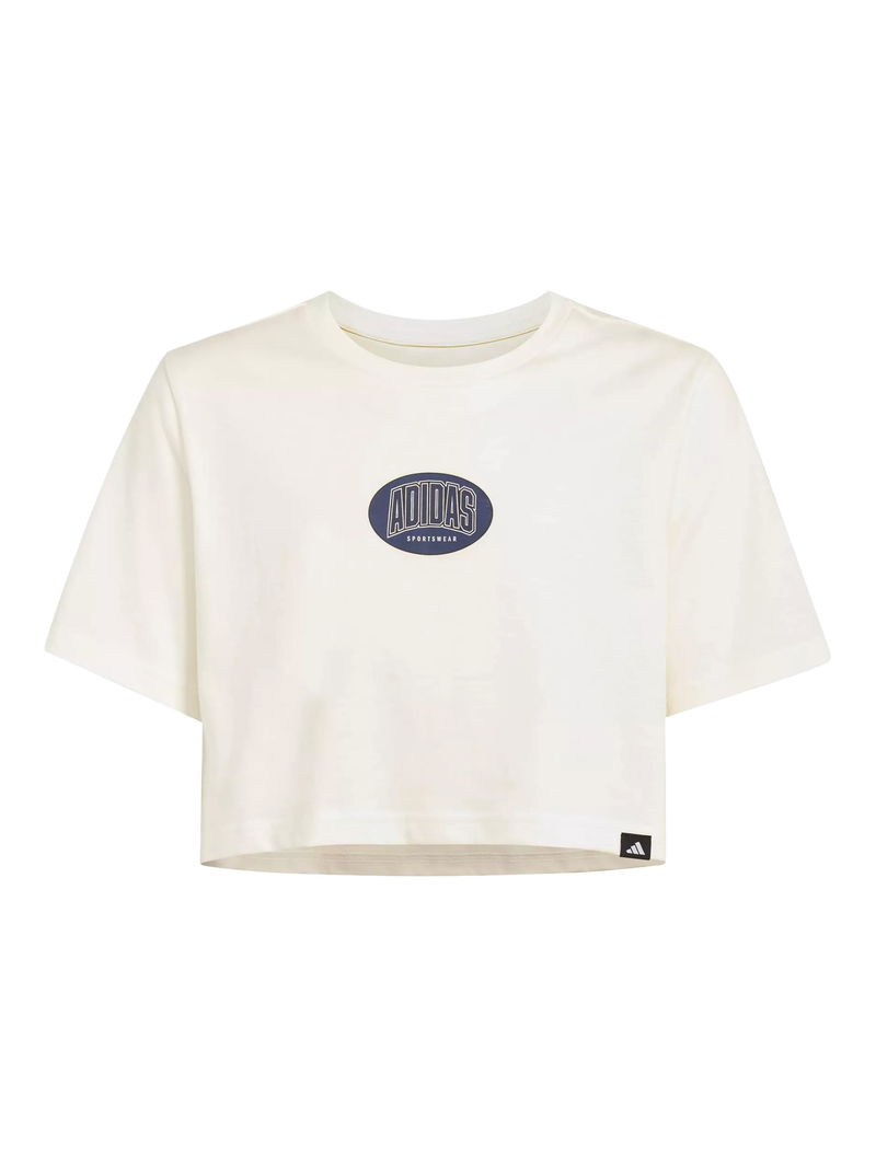 Kids' Cotton Stadium Graphic Cropped T-Shirt, Owhite
