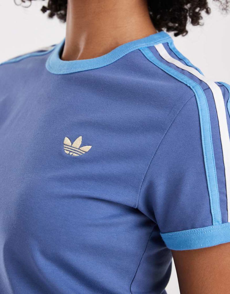 3 Stripes Slim Tee In Crew Blue / Light Blue / White