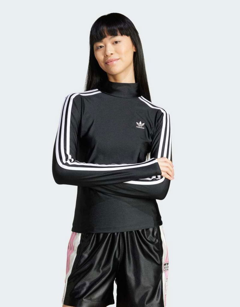 Adicolor 3-stripes Turtleneck Long Sleeve Tee In Black