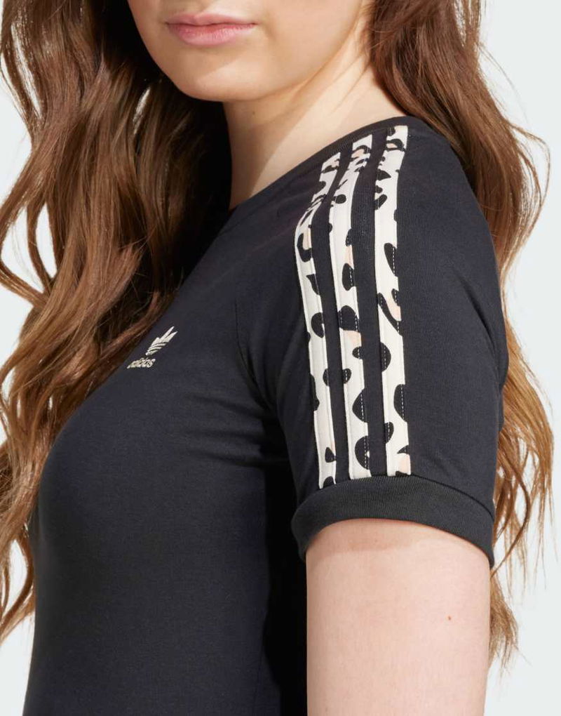 Adidas Leopard Print 3-Stripes T-Shirt - BLACK