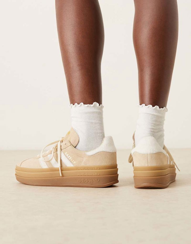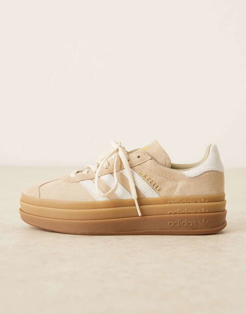 Gazelle Bold Trainers In Beige Pony Hair And White Stipes