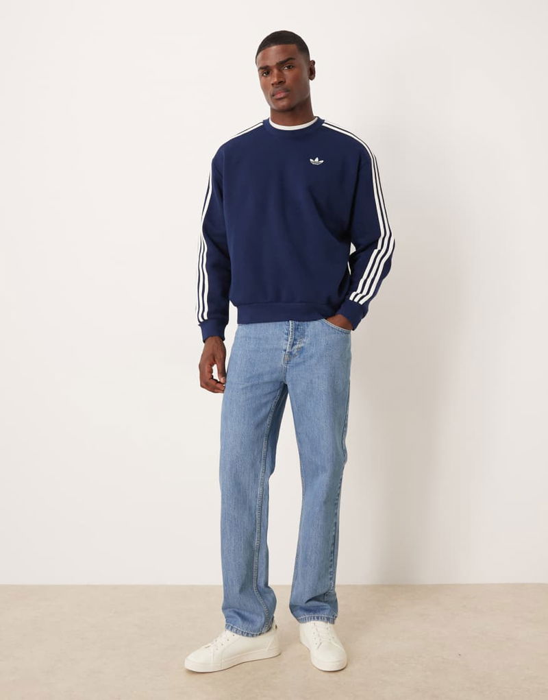 Three Stripe Oversized Sweatshirt In Navy