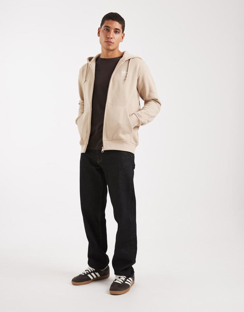 Trefoil Essentials Full-zip Hoodie In Beige