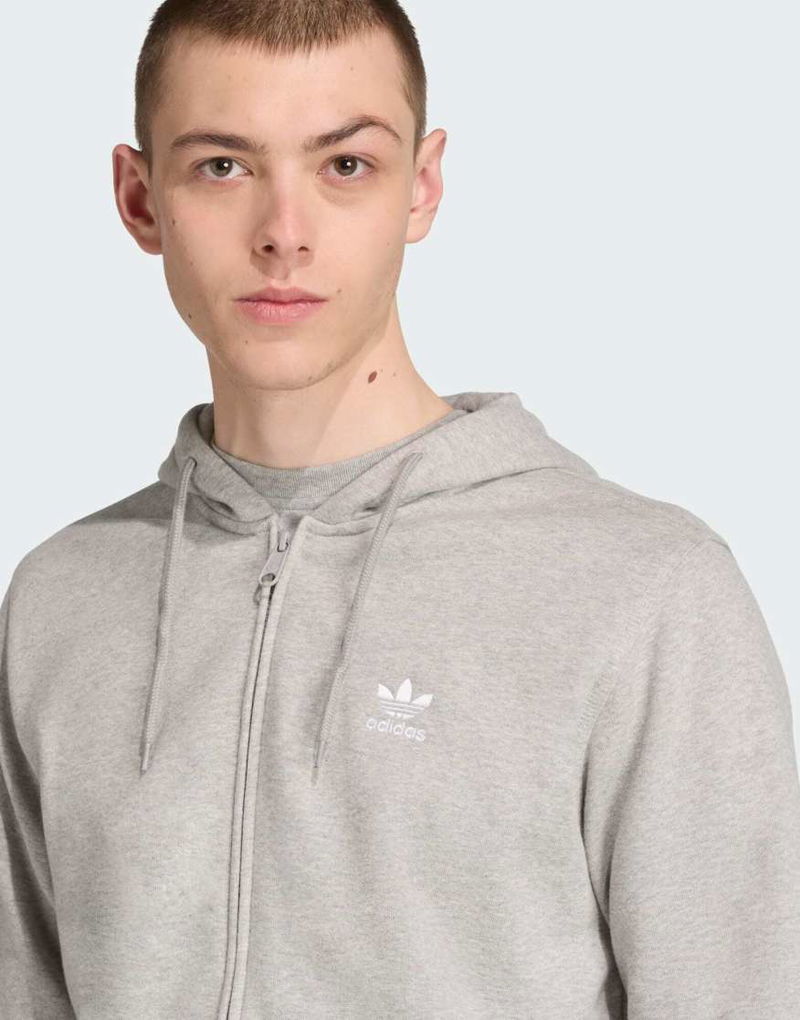 Trefoil Essentials Full-zip Hoodie In Medium Grey Heather / White