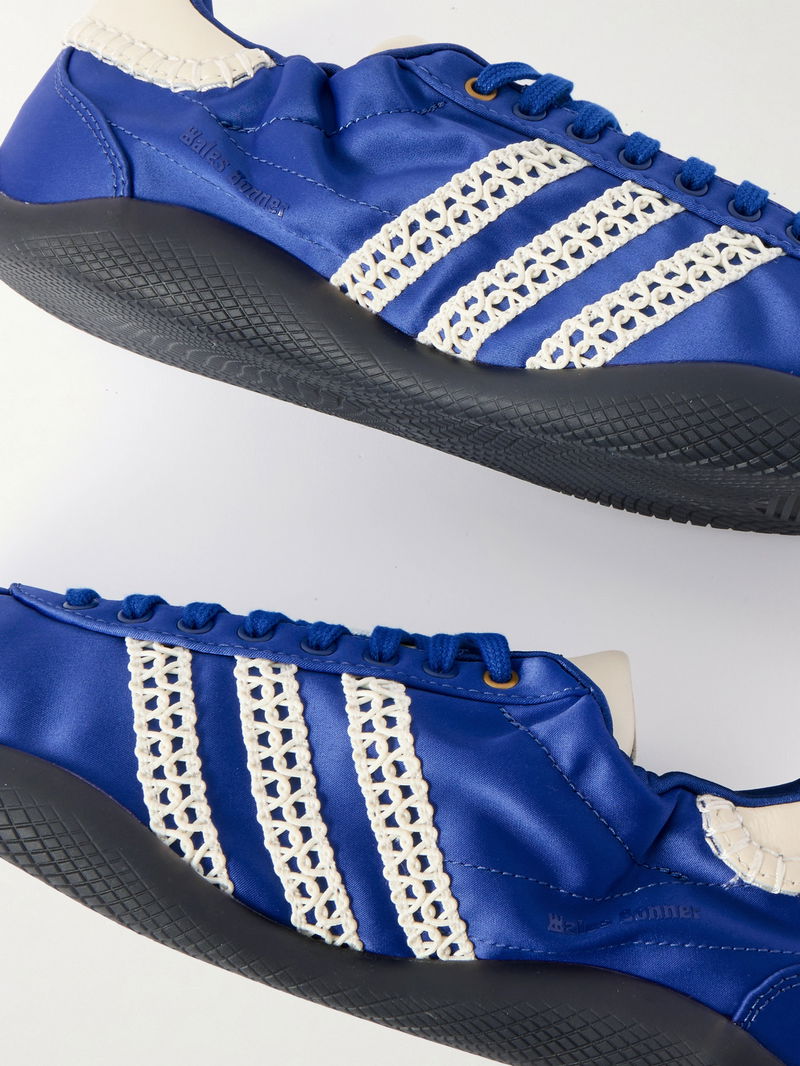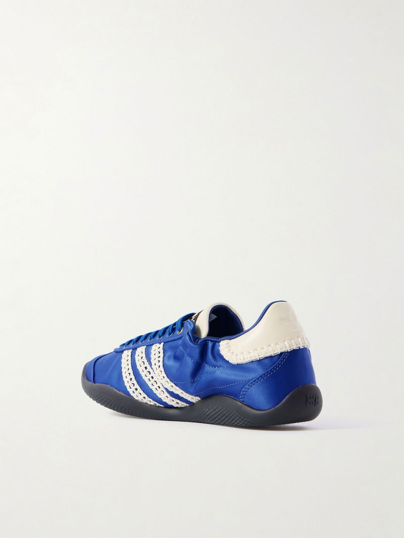 Wales Bonner Karintha Leather And Crochet-trimmed Satin Sneakers