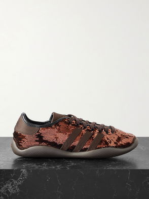 adidas Originals and Grace Wales Bonner have once again joined forces to re-imagine signature silhouettes. These 'Samba Millennium' low-tops - a style that was on the shelves briefly in 2009 - are made from suede and have croc-effect overlays wrapping the heels. They're finished with wavy stitching inspired by vintage football cleats. Small to size.