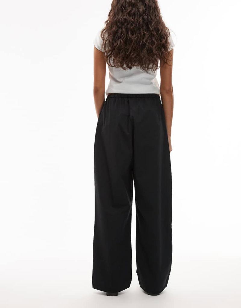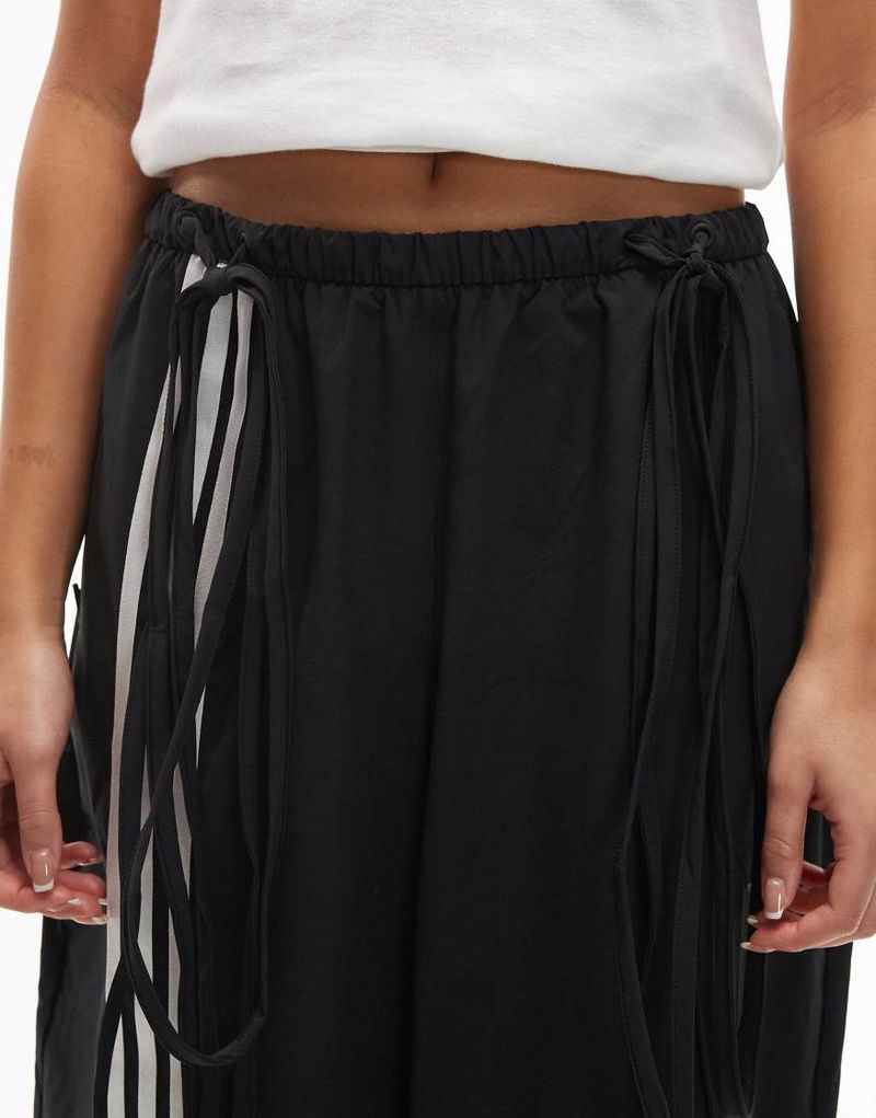 Woven Track Pants In Black With Ribbon Detail