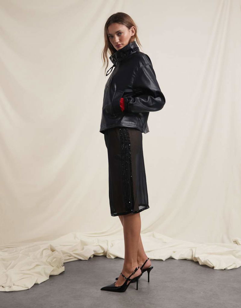 X ASOS Sheer Skirt With Sequin In Black