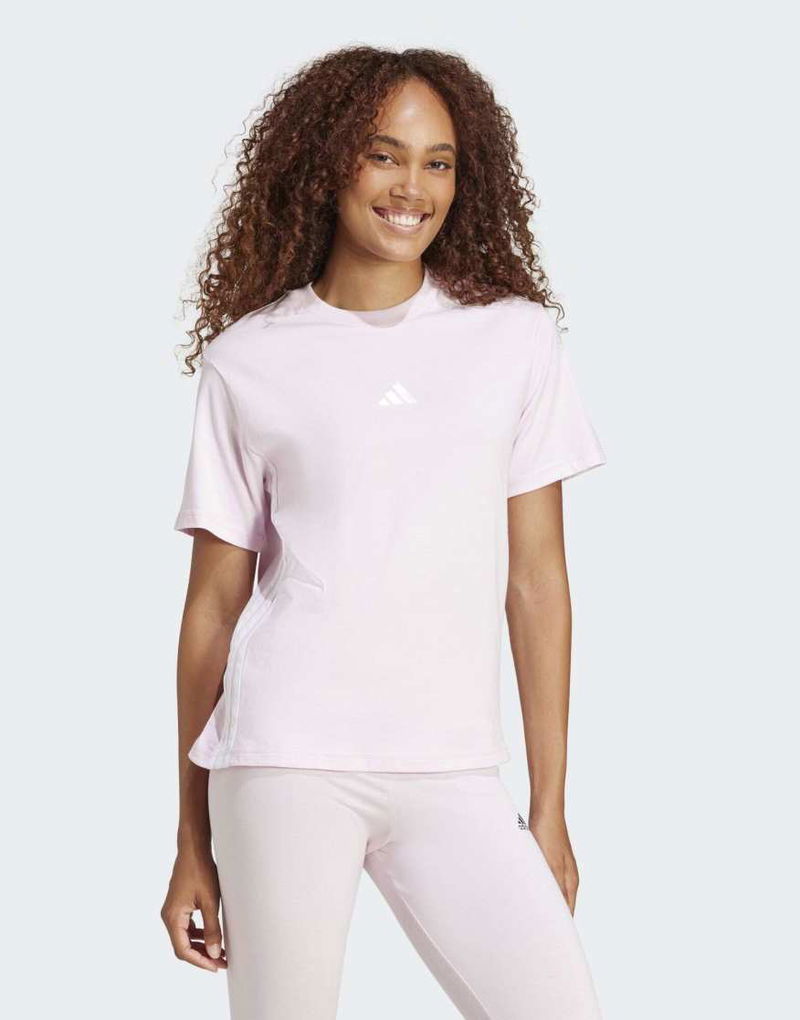 Performance Essentials 3-stripes Cotton Tee In Clear Pink / White