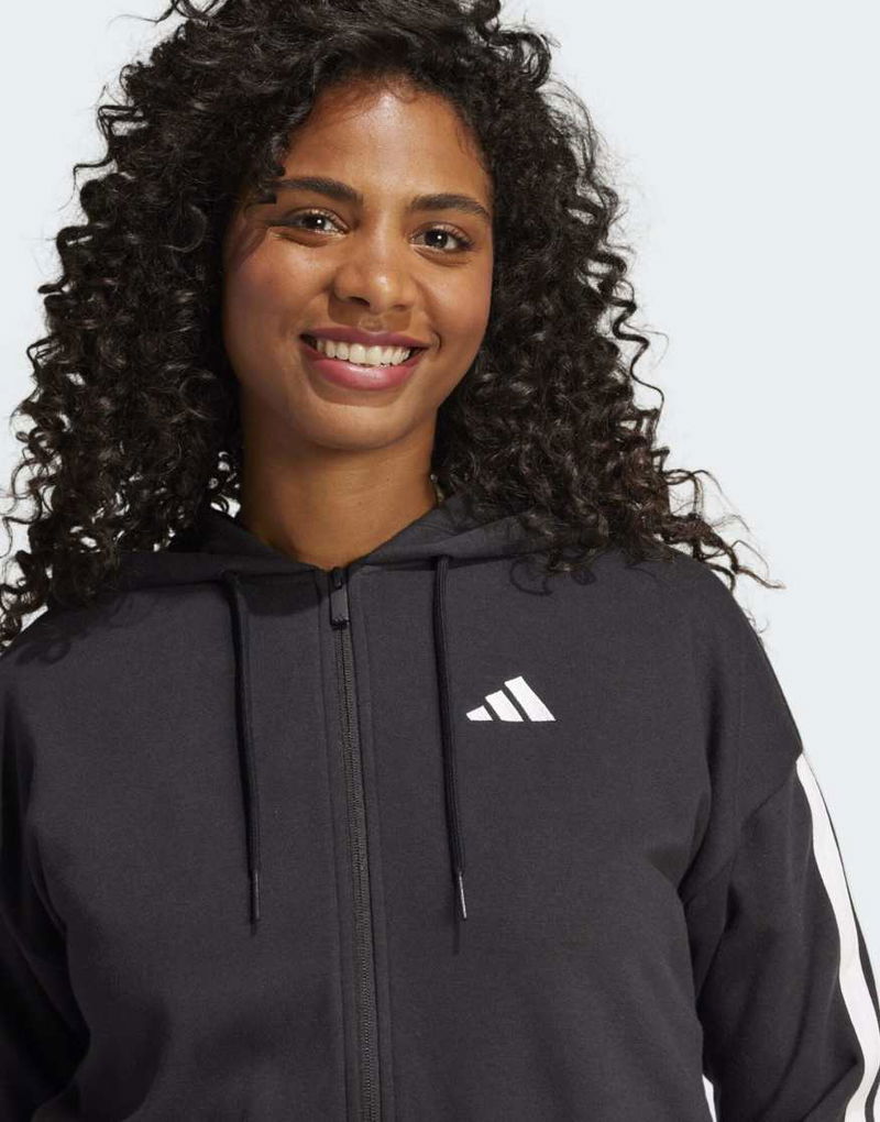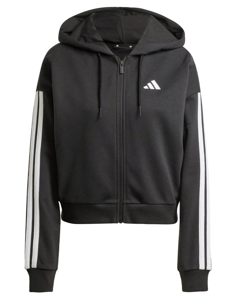 Performance Essentials 3-stripes French Terry Full-zip Hoodie In Black / White
