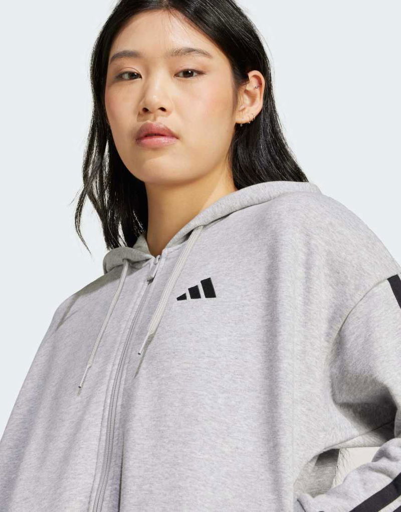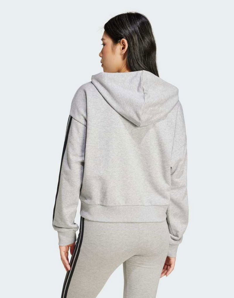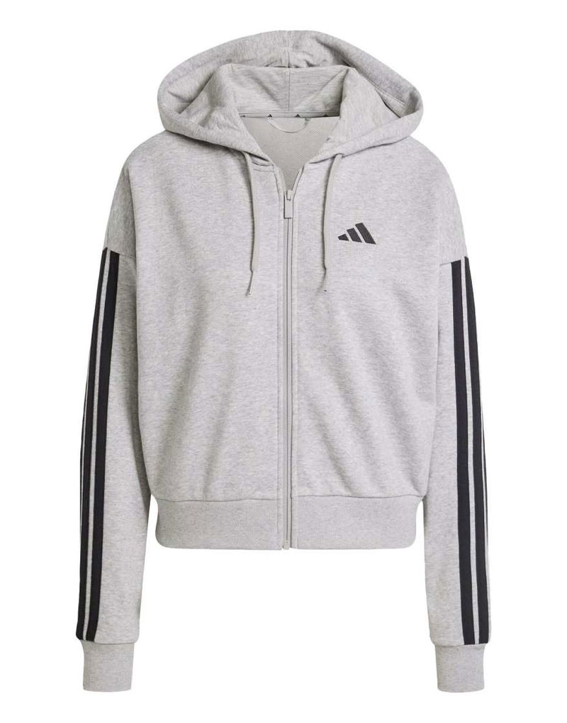 Performance Essentials 3-stripes French Terry Full-zip Hoodie In Medium Grey Heather / Black