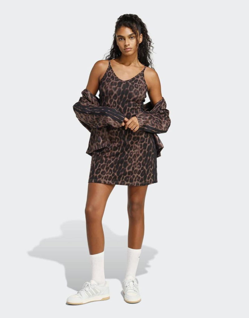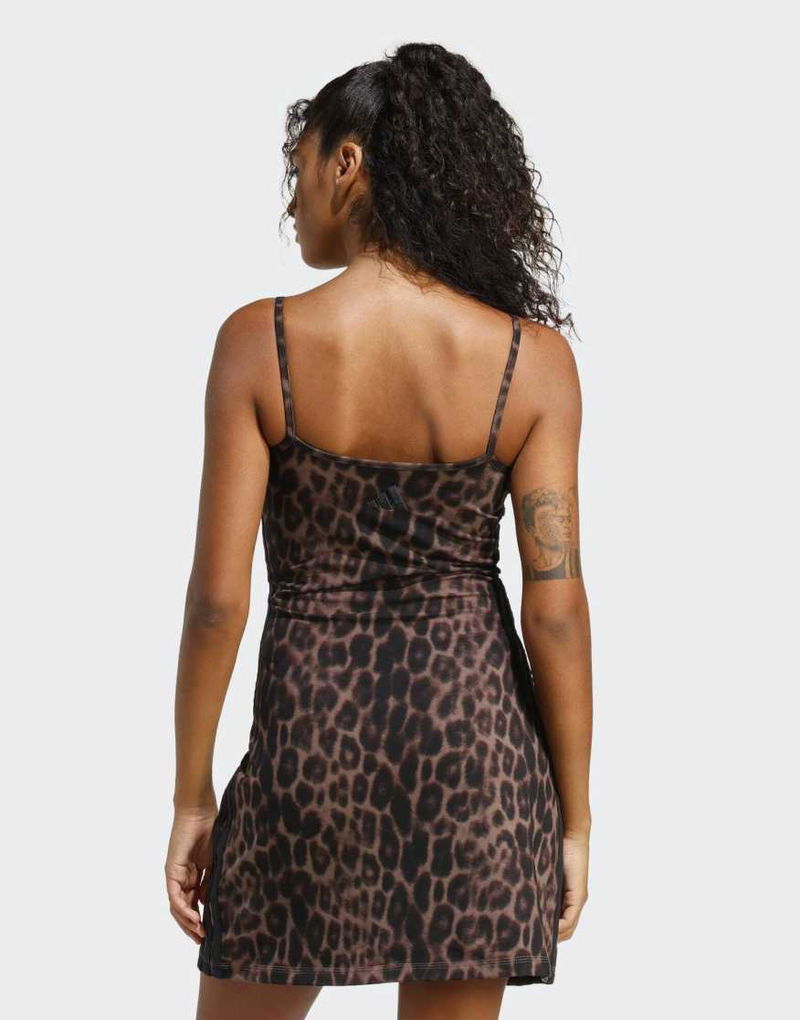 Performance Seasonal Essentials Leopard Print Mini-dress With 3-stripes In Brown