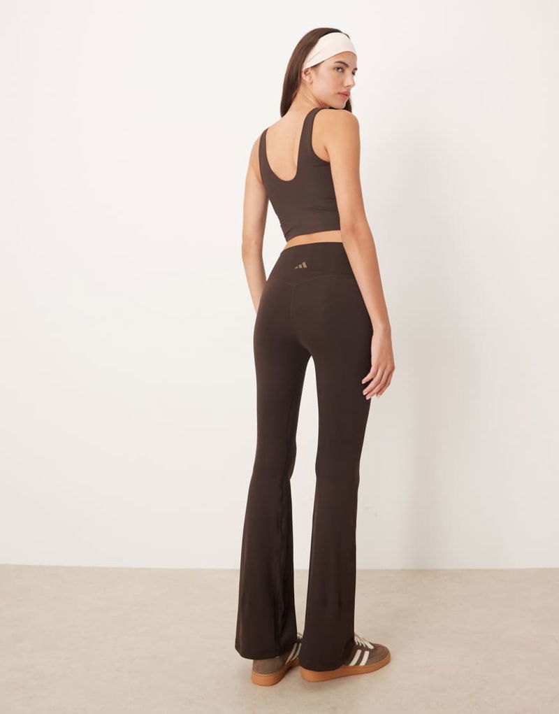 Performance Three Stripes Studios Crossover Waistband Flares In Brown