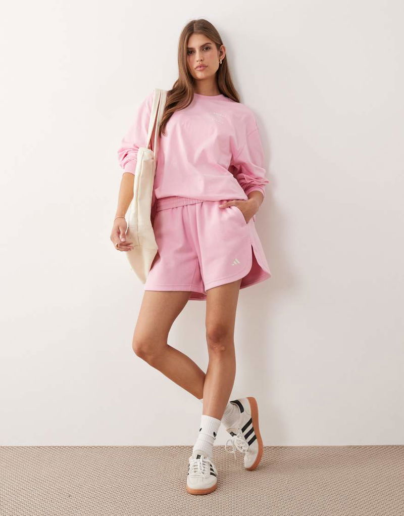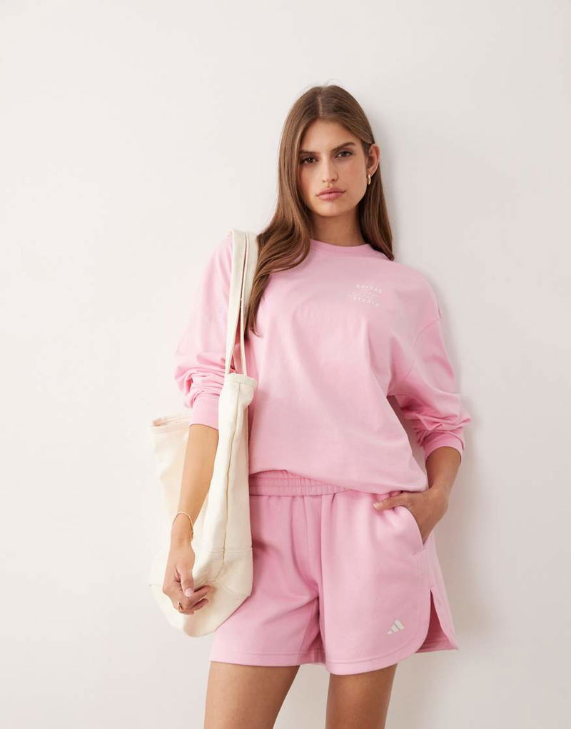 Performance Three Stripes Studios Long Sleeve Top In Pink