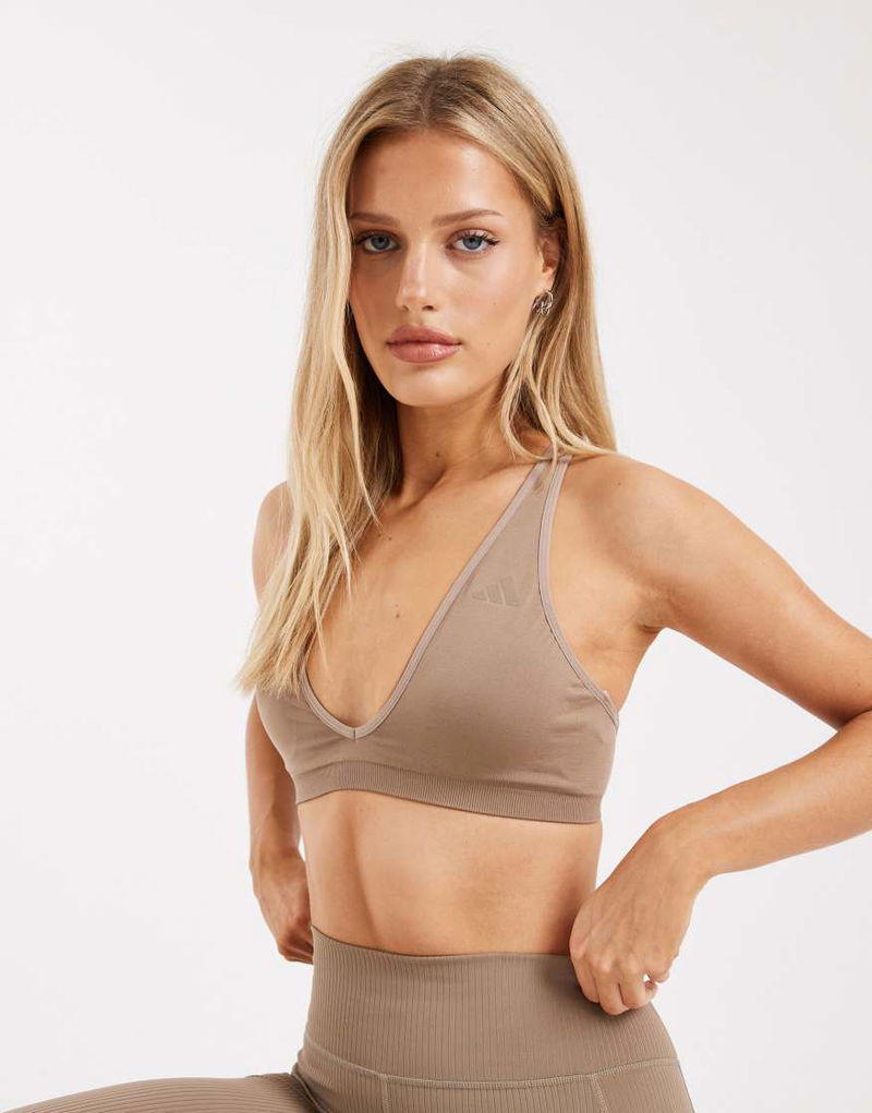 Performance Workout Essentials Knit Light Support Bra In Chalky Brown