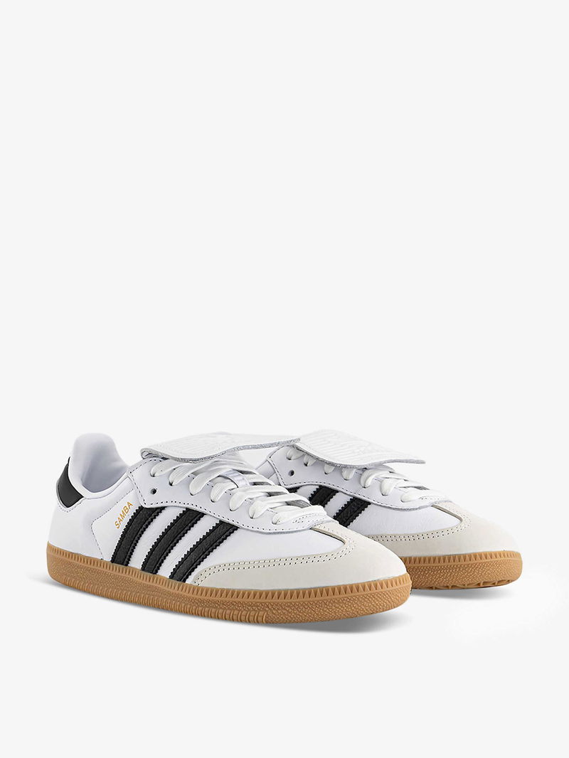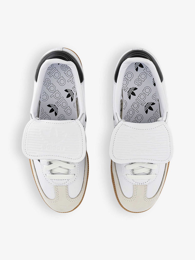 • Closed round toe, three embroidered stripes at sides, fold-down tongue, logo-print on tongue and sides, contrast panels at back heel and front toe, contrast sole