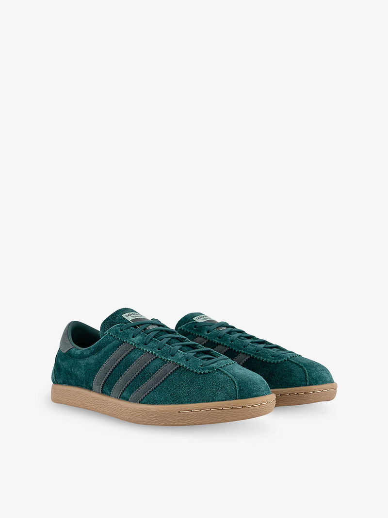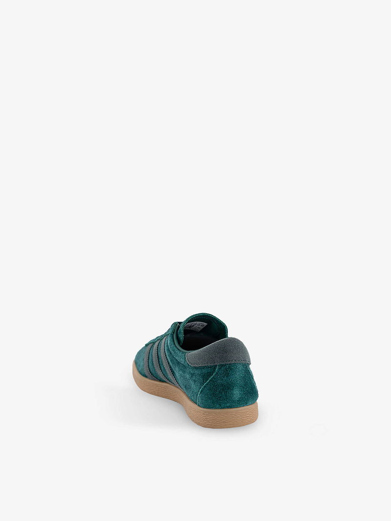 Adidas suede trainers. Lace-up fastening. Low top, panelled upper, brand patch at tongue, contrast gum sole.